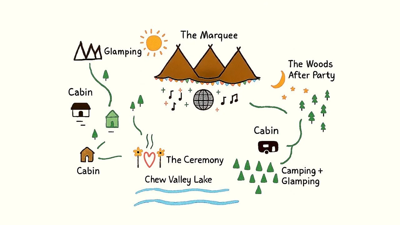 Ladies - be mindful of uneven ground when choosing heels, you might want to pack some comfy shoes, especially if joining us in the woods at the afterparty!